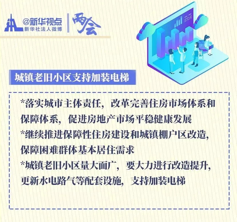 當然,對電梯行業(yè)而言最關注的應該是這一點:城鎮(zhèn)老舊小區(qū)支持加裝電梯。《政府工作報告》第三部分“2019年政府工作任務”中,第六條明確提出“繼續(xù)推進保障性住房建設和城鎮(zhèn)棚戶區(qū)改造,保障困難群體基本居住需求。城鎮(zhèn)老舊小區(qū)量大面廣,要大力進行改造提升,更新水電路氣等配套設施,支持加裝電梯,健全便民市場、便利店、步行街、停車場、無障礙通道等生活服務設施。新型城鎮(zhèn)化要處處體現(xiàn)以人為核心,提高柔性化治理、精細化服務水平,讓城市更加宜居,更具包容和人文關懷。” 來源:網(wǎng)絡。 |